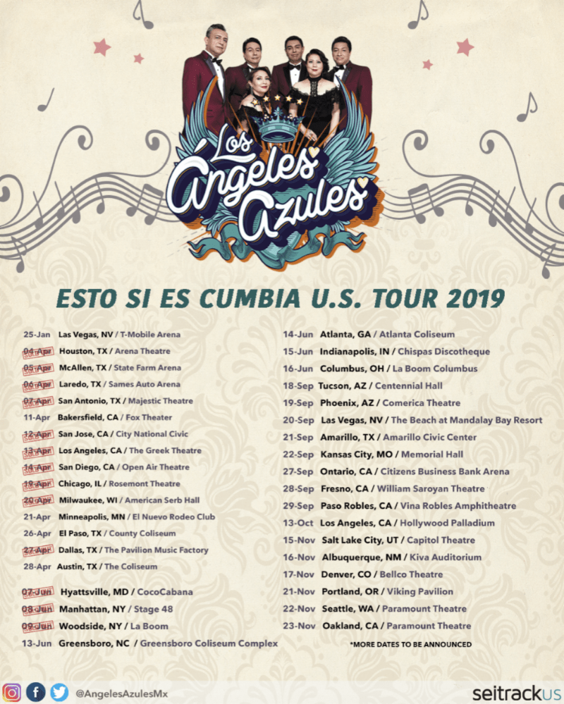 El pasado 7 de junio Los Ángeles Azules retomaron la gira “Esto Si Es Cumbia U.S Tour 2019” que ya cuenta con 13 sold-outs y llevará al exitoso grupo a más de 40 ciudades por Estados Unidos. Además, se encuentran preparando un espectacular concierto en el Auditorio Nacional el próximo 23 de agosto, donde sus seguidores no dejarán de bailar al ritmo de “Amor a primera vista” y todos los grandes éxitos de la agrupación originaria de Iztapalapa”
